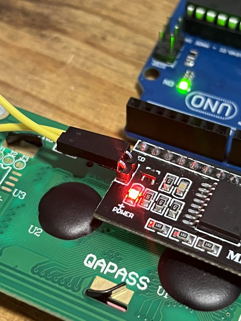 El display desplegaba los mensajes. Sólo tuve que ajustar el brillo y habilitar la luz de fondo de la pantalla (un cable a modo de jumper).