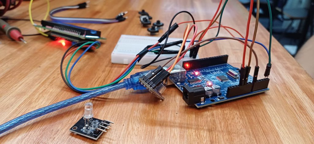 La idea principal seria agregarle 6 botones que interpreten a cada una de las cuerdas de la guitarra , haciendo que de esa manera al menos en la teoría sea mas eficiente para la afinación del instrumento al seleccionar la cuerda a afinar. Manejando principalmente la opción de sumarle a su vez también un led rgb para que indique si la cuerda quedo afinada dando paso a proseguir con la siguiente. Barajamos a su vez poder usar una escala de colores que ya vienen en algunos encordados de cuerdas , aunque esa idea todavía quedara en el tintero procederemos con la etapa de integración de los botones.